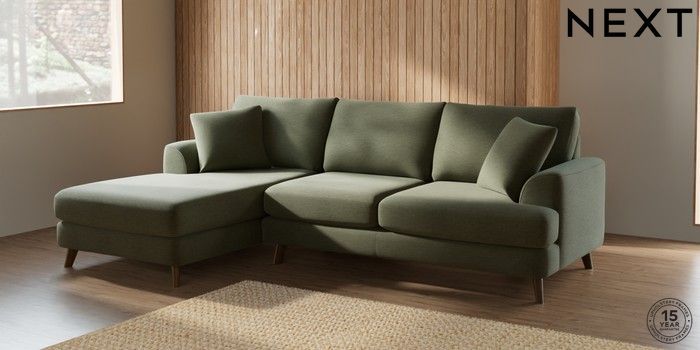 7.2.5 Buy Parker Medium Sofa Chaise - Left Hand Ripple Chenille Mid Moss Green Low Retro Tapered - Mid from the Laura Ashley online shop Click here to use our website with more accessibility support, for example screen readers