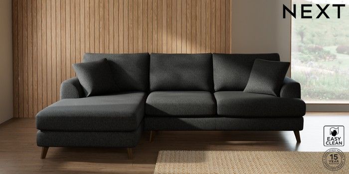 7.2.4 Buy Parker Medium Sofa Chaise - Left Hand Tweedy Blend Easy Clean Charcoal Grey Low Retro Tapered - Mid from the Laura Ashley online shop Click here to use our website with more accessibility support, for example screen readers