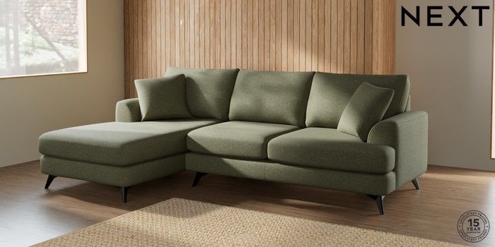 7.2.5 Buy Parker Medium Sofa Chaise - Left Hand Tweedy Chenille Mid Moss Green High Metal - Black from the Laura Ashley online shop Click here to use our website with more accessibility support, for example screen readers