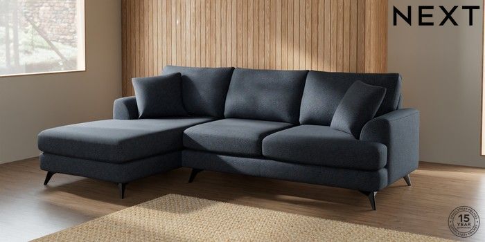 7.2.5 Buy Parker Medium Sofa Chaise - Left Hand Tweedy Chenille Navy Blue High Metal - Black from the Laura Ashley online shop Click here to use our website with more accessibility support, for example screen readers