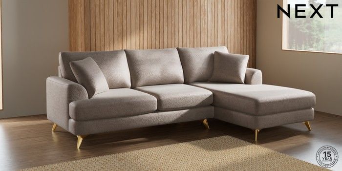 7.2.5 Buy Parker Medium Sofa Chaise - Right Hand Boucle Chenille Light Natural High Metal - Brass from the Laura Ashley online shop Click here to use our website with more accessibility support, for example screen readers