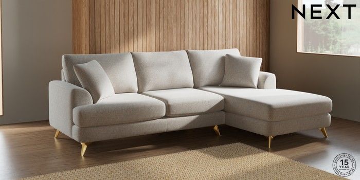 7.2.4 Buy Parker Medium Sofa Chaise - Right Hand Chunky Marl Oyster High Metal - Brass from the Laura Ashley online shop Click here to use our website with more accessibility support, for example screen readers
