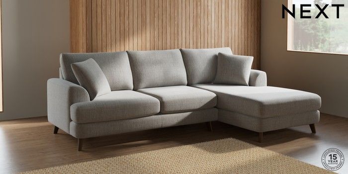 7.2.4 Buy Parker Medium Sofa Chaise - Right Hand Chunky Weave Dove Grey Low Retro Tapered - Mid from the Laura Ashley online shop Click here to use our website with more accessibility support, for example screen readers
