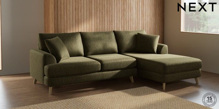 7.2.5 Buy Parker Medium Sofa Chaise - Right Hand Cotswold Chenille Dark Green Low Retro Tapered - Light from the Laura Ashley online shop Click here to use our website with more accessibility support, for example screen readers