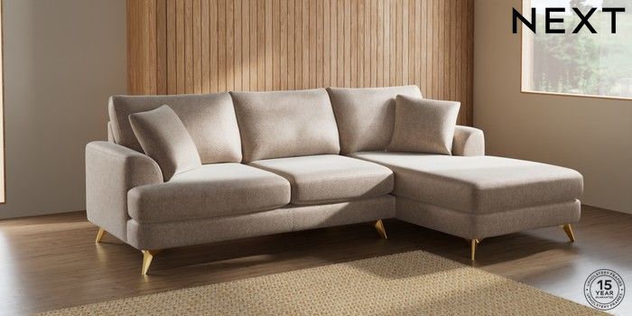 7.2.5 Buy Parker Medium Sofa Chaise - Right Hand Cotswold Chenille Light Natural High Metal - Brass from the Laura Ashley online shop Click here to use our website with more accessibility support, for example screen readers
