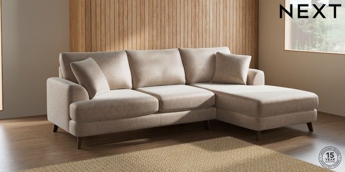 7.2.5 Buy Parker Medium Sofa Chaise - Right Hand Cotswold Chenille Light Natural Low Retro Tapered - Mid from the Laura Ashley online shop Click here to use our website with more accessibility support, for example screen readers
