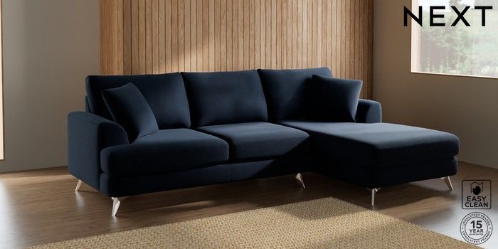 7.2.5 Buy Parker Medium Sofa Chaise - Right Hand Fine Chenille Easy Clean Dark Navy Blue High Metal - Chrome from the Laura Ashley online shop Click here to use our website with more accessibility support, for example screen readers