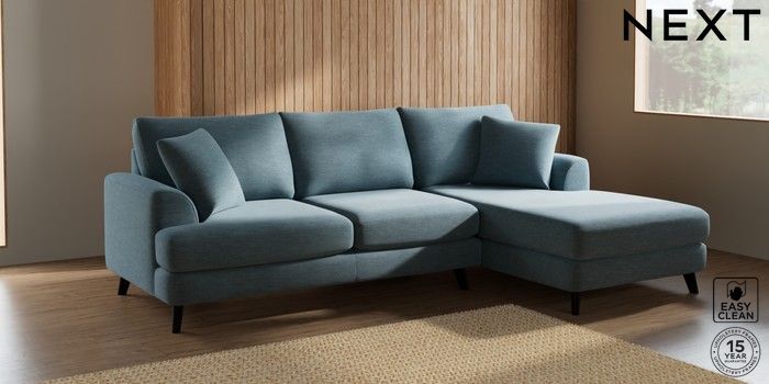 7.2.5 Buy Parker Medium Sofa Chaise - Right Hand Fine Chenille Easy Clean Mid Blue Low Retro Tapered - Dark from the Laura Ashley online shop Click here to use our website with more accessibility support, for example screen readers