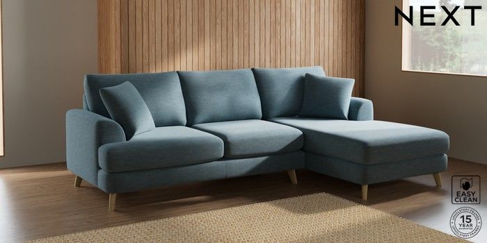 7.2.5 Buy Parker Medium Sofa Chaise - Right Hand Fine Chenille Easy Clean Mid Blue Low Retro Tapered - Light from the Laura Ashley online shop Click here to use our website with more accessibility support, for example screen readers