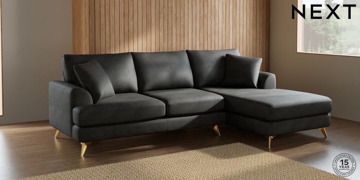 7.2.5 Buy Parker Medium Sofa Chaise - Right Hand Monza Faux Leather Easy Clean Dark Grey High Metal - Brass from the Laura Ashley online shop Click here to use our website with more accessibility support, for example screen readers