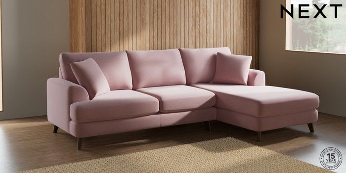 7.2.5 Buy Parker Medium Sofa Chaise - Right Hand Natural Mix Light Rose Pink Low Retro Tapered - Mid from the Laura Ashley online shop Click here to use our website with more accessibility support, for example screen readers