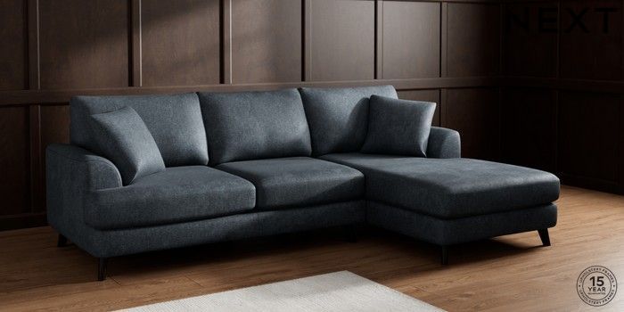 7.2.6 Buy Parker Medium Sofa Chaise - Right Hand Plush Chenille Slate Blue Low Retro Tapered - Dark from the Laura Ashley online shop Click here to use our website with more accessibility support, for example screen readers