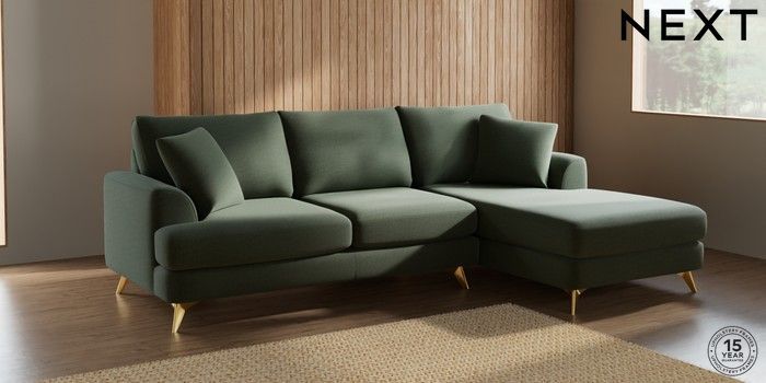 7.2.5 Buy Parker Medium Sofa Chaise - Right Hand Relaxed Linen Look Dark Green High Metal - Brass from the Laura Ashley online shop Click here to use our website with more accessibility support, for example screen readers