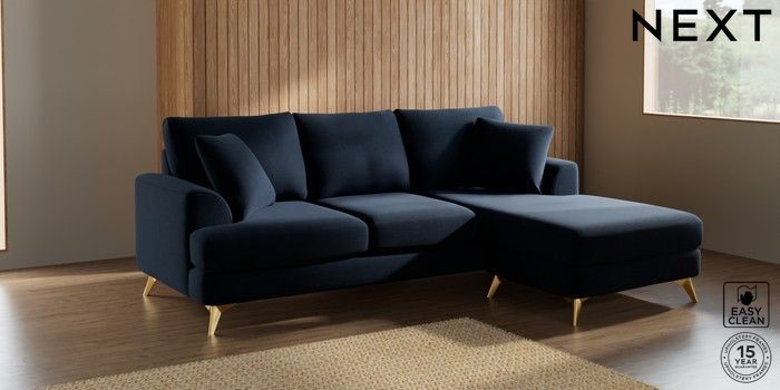7.2.5 Buy Parker Small Sofa Chaise - Universal Fine Chenille Easy Clean Dark Navy Blue High Metal - Brass from the Laura Ashley online shop Click here to use our website with more accessibility support, for example screen readers