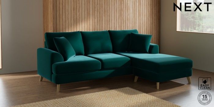 7.2.5 Buy Parker Small Sofa Chaise - Universal Plush Velvet Easy Clean Juniper Green Low Retro Tapered - Light from the Laura Ashley online shop Click here to use our website with more accessibility support, for example screen readers