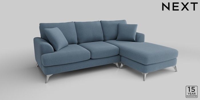 6.12.1 Buy Parker Small Sofa Chaise - Universal Relaxed Linen Look Mid Blue High Metal - Chrome from the Laura Ashley online shop Click here to use our website with more accessibility support, for example screen readers