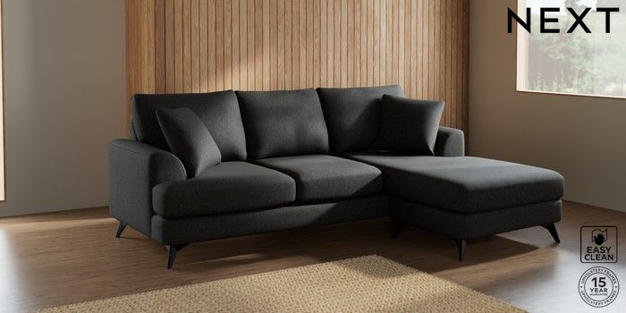7.2.5 Buy Parker Small Sofa Chaise - Universal Tweedy Blend Easy Clean Charcoal Grey High Metal - Black from the Laura Ashley online shop Click here to use our website with more accessibility support, for example screen readers
