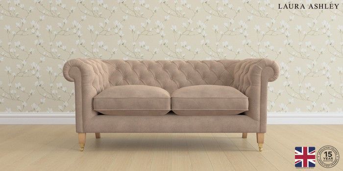6.12.1 Buy Penarth by Laura Ashley 2 Seater Sofa Ailsworth Mink Natural Straight Brass Castor - Light Oak from the Laura Ashley online shop Click here to use our website with more accessibility support, for example screen readers