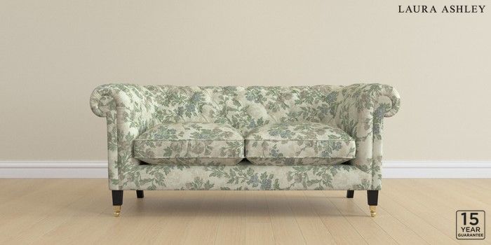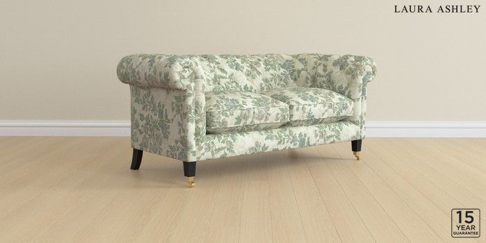 6.11.4 Buy Penarth by Laura Ashley 2 Seater Sofa Ellerby Seaspray Blue Straight Brass Castor - Black from the Laura Ashley online shop Click here to use our website with more accessibility support, for example screen readers