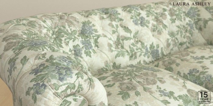 The Laura Ashley Penarth is a signature deep sit curved sofa in the Chesterfield style. Featuring gently scrolled, wide arms, matching the height of the back of the sofa, combined with deep seat cushions filled with foam core and fibre wrap interiors, this sofa is perfect for relaxing in. Elegant, tapered show wood legs with brass or chrome castors complete the traditional, classic style.