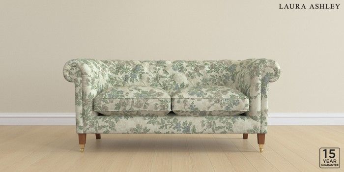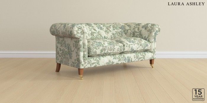 6.11.4 Buy Penarth by Laura Ashley 2 Seater Sofa Ellerby Seaspray Blue Straight Brass Castor - Teak from the Laura Ashley online shop Click here to use our website with more accessibility support, for example screen readers