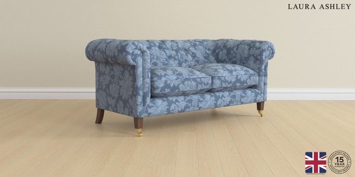 6.12.1 Buy Penarth by Laura Ashley 2 Seater Sofa Tamara Dusky Seaspray Blue Straight Brass Castor - Chestnut from the Laura Ashley online shop Click here to use our website with more accessibility support, for example screen readers