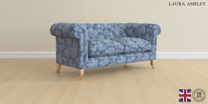 6.12.1 Buy Penarth by Laura Ashley 2 Seater Sofa Tamara Dusky Seaspray Blue Straight Brass Castor - Light Oak from the Laura Ashley online shop Click here to use our website with more accessibility support, for example screen readers