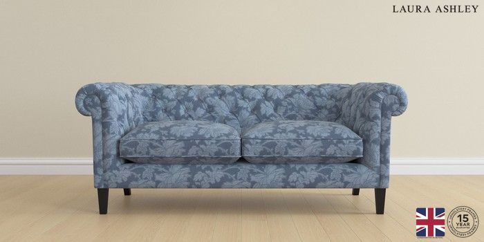 6.12.1 Buy Penarth by Laura Ashley 3 Seater Small Sofa Tamara Dusky Seaspray Blue Straight Mid - Black from the Laura Ashley online shop Click here to use our website with more accessibility support, for example screen readers