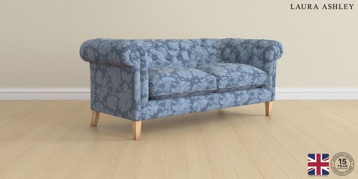 6.12.1 Buy Penarth by Laura Ashley 3 Seater Small Sofa Tamara Dusky Seaspray Blue Straight Mid - Light Oak from the Laura Ashley online shop Click here to use our website with more accessibility support, for example screen readers