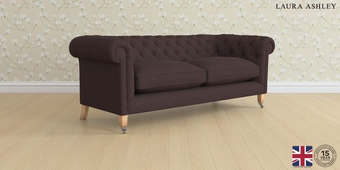 7.0.3 Buy Penarth by Laura Ashley 3 Seater Sofa Bainton Chocolate Brown Straight Chrome Castor - Light Oak from the Laura Ashley online shop Click here to use our website with more accessibility support, for example screen readers