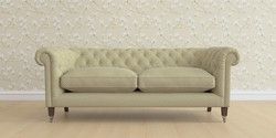 The Laura Ashley Penarth is a signature deep sit curved sofa in the Chesterfield style. Featuring gently scrolled, wide arms, matching the height of the back of the sofa, combined with deep seat cushions filled with foam core and fibre wrap interiors, this sofa is perfect for relaxing in. Elegant, tapered show wood legs with brass or chrome castors complete the traditional, classic style.