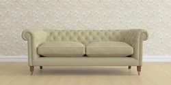 The Laura Ashley Penarth is a signature deep sit curved sofa in the Chesterfield style. Featuring gently scrolled, wide arms, matching the height of the back of the sofa, combined with deep seat cushions filled with foam core and fibre wrap interiors, this sofa is perfect for relaxing in. Elegant, tapered show wood legs with brass or chrome castors complete the traditional, classic style.