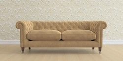 The Laura Ashley Penarth is a signature deep sit curved sofa in the Chesterfield style. Featuring gently scrolled, wide arms, matching the height of the back of the sofa, combined with deep seat cushions filled with foam core and fibre wrap interiors, this sofa is perfect for relaxing in. Elegant, tapered show wood legs with brass or chrome castors complete the traditional, classic style.