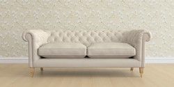The Laura Ashley Penarth is a signature deep sit curved sofa in the Chesterfield style. Featuring gently scrolled, wide arms, matching the height of the back of the sofa, combined with deep seat cushions filled with foam core and fibre wrap interiors, this sofa is perfect for relaxing in. Elegant, tapered show wood legs with brass or chrome castors complete the traditional, classic style.
