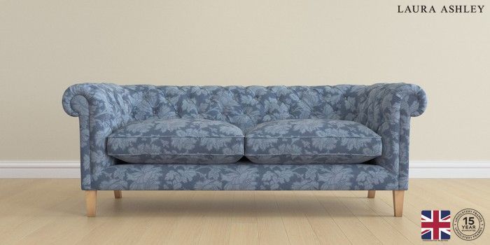 6.12.1 Buy Penarth by Laura Ashley 3 Seater Sofa Tamara Dusky Seaspray Blue Straight Mid - Light Oak from the Laura Ashley online shop Click here to use our website with more accessibility support, for example screen readers