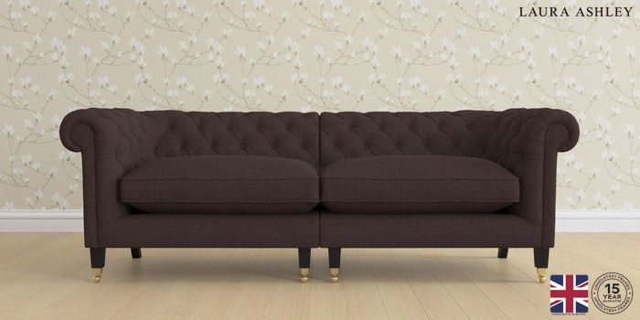 7.0.3 Buy Penarth by Laura Ashley 4 Seater Sofa Bainton Chocolate Brown Straight Brass Castor - Black from the Laura Ashley online shop Click here to use our website with more accessibility support, for example screen readers