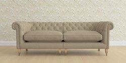 The Laura Ashley Penarth is a signature deep sit curved sofa in the Chesterfield style. Featuring gently scrolled, wide arms, matching the height of the back of the sofa, combined with deep seat cushions filled with foam core and fibre wrap interiors, this sofa is perfect for relaxing in. Elegant, tapered show wood legs with brass or chrome castors complete the traditional, classic style.