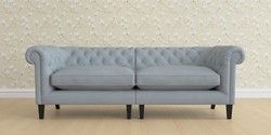 The Laura Ashley Penarth is a signature deep sit curved sofa in the Chesterfield style. Featuring gently scrolled, wide arms, matching the height of the back of the sofa, combined with deep seat cushions filled with foam core and fibre wrap interiors, this sofa is perfect for relaxing in. Elegant, tapered show wood legs with brass or chrome castors complete the traditional, classic style.