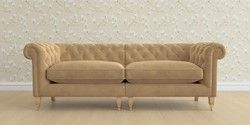 The Laura Ashley Penarth is a signature deep sit curved sofa in the Chesterfield style. Featuring gently scrolled, wide arms, matching the height of the back of the sofa, combined with deep seat cushions filled with foam core and fibre wrap interiors, this sofa is perfect for relaxing in. Elegant, tapered show wood legs with brass or chrome castors complete the traditional, classic style.