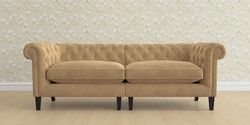 The Laura Ashley Penarth is a signature deep sit curved sofa in the Chesterfield style. Featuring gently scrolled, wide arms, matching the height of the back of the sofa, combined with deep seat cushions filled with foam core and fibre wrap interiors, this sofa is perfect for relaxing in. Elegant, tapered show wood legs with brass or chrome castors complete the traditional, classic style.