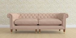 The Laura Ashley Penarth is a signature deep sit curved sofa in the Chesterfield style. Featuring gently scrolled, wide arms, matching the height of the back of the sofa, combined with deep seat cushions filled with foam core and fibre wrap interiors, this sofa is perfect for relaxing in. Elegant, tapered show wood legs with brass or chrome castors complete the traditional, classic style.