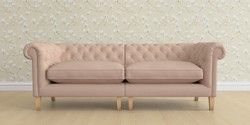 The Laura Ashley Penarth is a signature deep sit curved sofa in the Chesterfield style. Featuring gently scrolled, wide arms, matching the height of the back of the sofa, combined with deep seat cushions filled with foam core and fibre wrap interiors, this sofa is perfect for relaxing in. Elegant, tapered show wood legs with brass or chrome castors complete the traditional, classic style.
