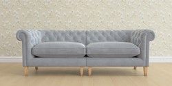 The Laura Ashley Penarth is a signature deep sit curved sofa in the Chesterfield style. Featuring gently scrolled, wide arms, matching the height of the back of the sofa, combined with deep seat cushions filled with foam core and fibre wrap interiors, this sofa is perfect for relaxing in. Elegant, tapered show wood legs with brass or chrome castors complete the traditional, classic style.