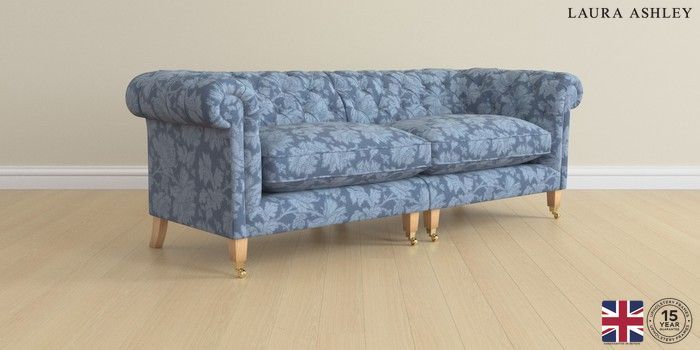 6.12.1 Buy Penarth by Laura Ashley 4 Seater Sofa Tamara Dusky Seaspray Blue Straight Brass Castor - Light Oak from the Laura Ashley online shop Click here to use our website with more accessibility support, for example screen readers