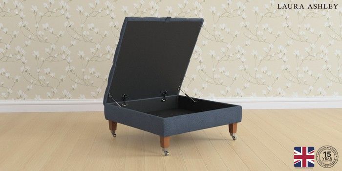 7.2.10 Buy Penarth by Laura Ashley Extra Large Storage Footstool Lundar Chenille Navy Blue Straight Chrome Castor - Teak from the Laura Ashley online shop Click here to use our website with more accessibility support, for example screen readers