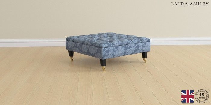 6.12.1 Buy Penarth by Laura Ashley Extra Large Storage Footstool Tamara Dusky Seaspray Blue Straight Brass Castor - Black from the Laura Ashley online shop Click here to use our website with more accessibility support, for example screen readers