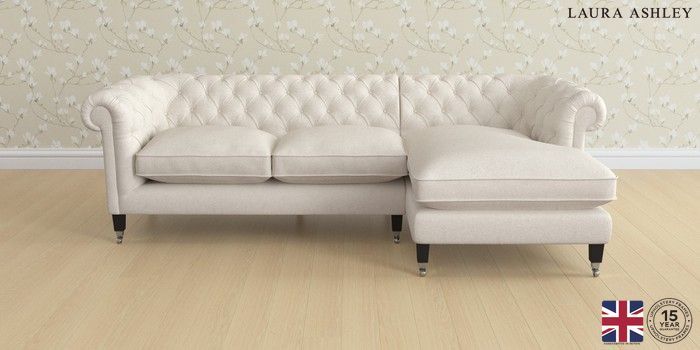 7.2.6 Buy Penarth by Laura Ashley Medium Sofa Chaise - Right Hand Anneliese Oyster Natural Straight Chrome Castor - Black from the Laura Ashley online shop Click here to use our website with more accessibility support, for example screen readers