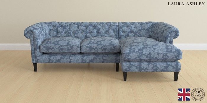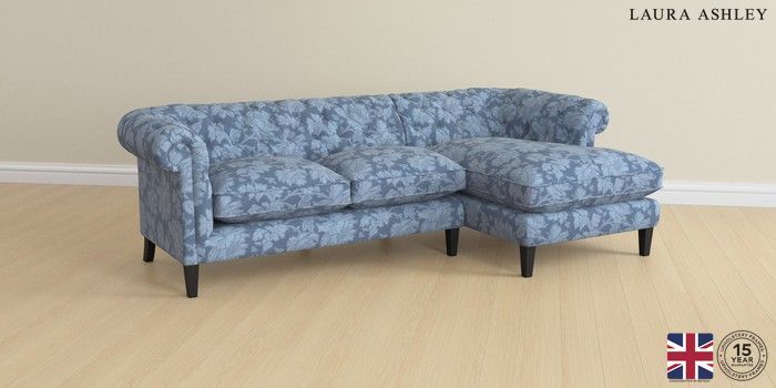 6.12.1 Buy Penarth by Laura Ashley Medium Sofa Chaise - Right Hand Tamara Dusky Seaspray Blue Straight Mid - Black from the Laura Ashley online shop Click here to use our website with more accessibility support, for example screen readers