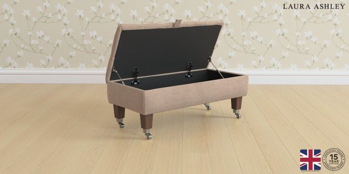 7.2.10 Buy Penarth by Laura Ashley Storage Footstool Ailsworth Mink Natural Straight Chrome Castor - Chestnut from the Laura Ashley online shop Click here to use our website with more accessibility support, for example screen readers