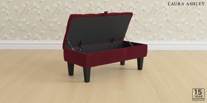 6.11.4 Buy Penarth by Laura Ashley Storage Footstool Alwyn Velvet Burgundy Red Straight Mid - Black from the Laura Ashley online shop Click here to use our website with more accessibility support, for example screen readers